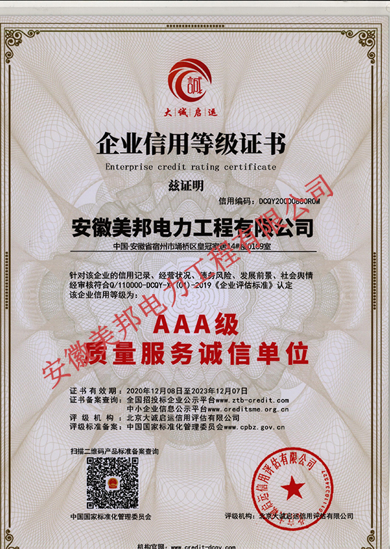 安徽美邦電力工程有限公司成立于2015年6月,坐落于宿州高新區(qū)。是一家從事電力工程設(shè)計(jì)、電力設(shè)備生產(chǎn)、電力工程施工、電力托管服務(wù)、電力工程搶險(xiǎn)為一體的一站式綜合性公司。公司現(xiàn)有各類(lèi)專(zhuān)業(yè)技術(shù)職稱(chēng)的管理人員及大批從事電力工程專(zhuān)業(yè)施…